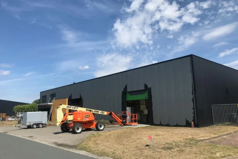 Delaminatie is zoals u waarschijnlijk al wel weet het loslaten van een gelamineerde laag. Dit komt regelmatig voor bij de (Plastisol) coating van daken of gevels die voorzien zijn van oudere beplating of panelen. Vooral gevels die in de zon staan, hebben hier het meeste last van, want door uv-straling verdwijnen langzamerhand de weekmakers uit de pvc-coatings. Die worden daarom vuilgevoelig en hard en door regen, wind en andere weersinvloeden laat de coating dan na verloop van tijd los. Dit was ook het geval met de gevel van dit bedrijfspand in Hengelo. Onze specialisten hebben de oude coating verwijderd en de gevel vervolgens weer overgespoten in een mooie donkergrijze kleur!