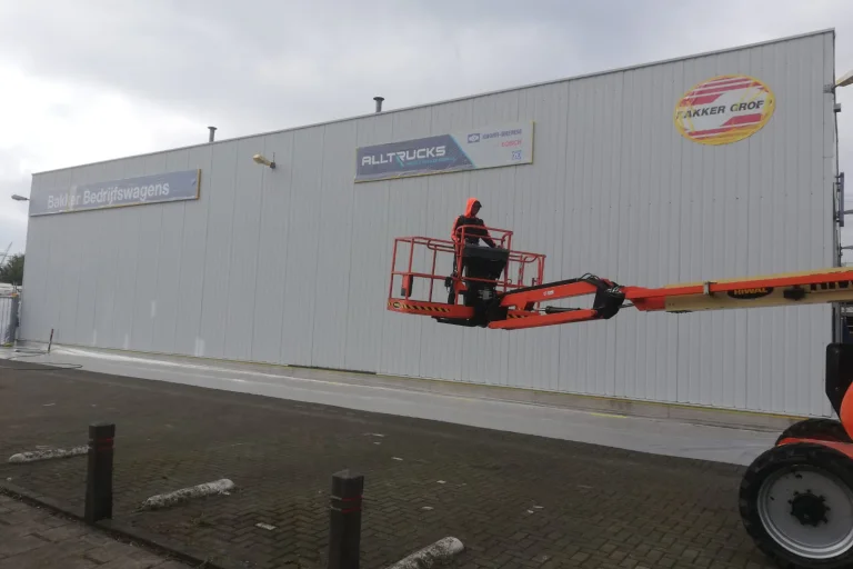 De huisstijl van alle vestigingen van Bakker Bedrijfswagens B.V. werd aangepast. Daarom moesten onder andere de lichtgrijze gevels overgespoten worden in een mooie antraciet grijze kleur. Omdat de overheaddeuren wel lichtgrijs zijn gebleven, geeft dit nu een prachtig contrast met de donkere gevel! Bent u benieuwd naar de mogelijkheden op het gebied van het overspuiten van uw bedrijfspand? Neem dan eens vrijblijvend contact op met 1 van onze adviseurs!
